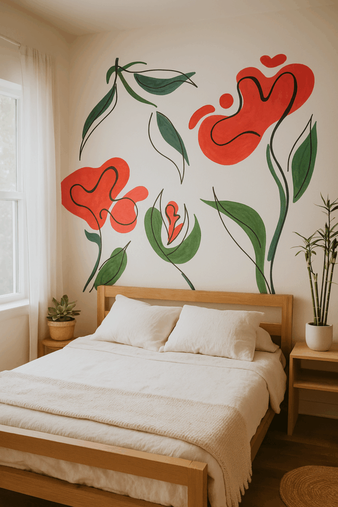 Je peins des fresques murales et je dessine des illustrations minimalistes qui célèbrent la beauté féminine, la nature, et l’introspection — pour transformer vos intérieurs et objets en lieux d’ancrage, d’inspiration et de douceur.