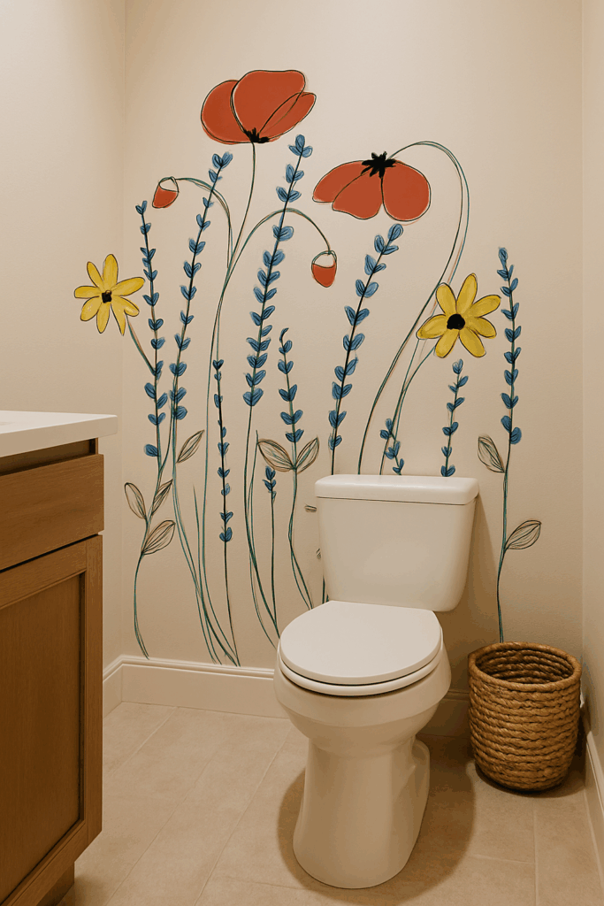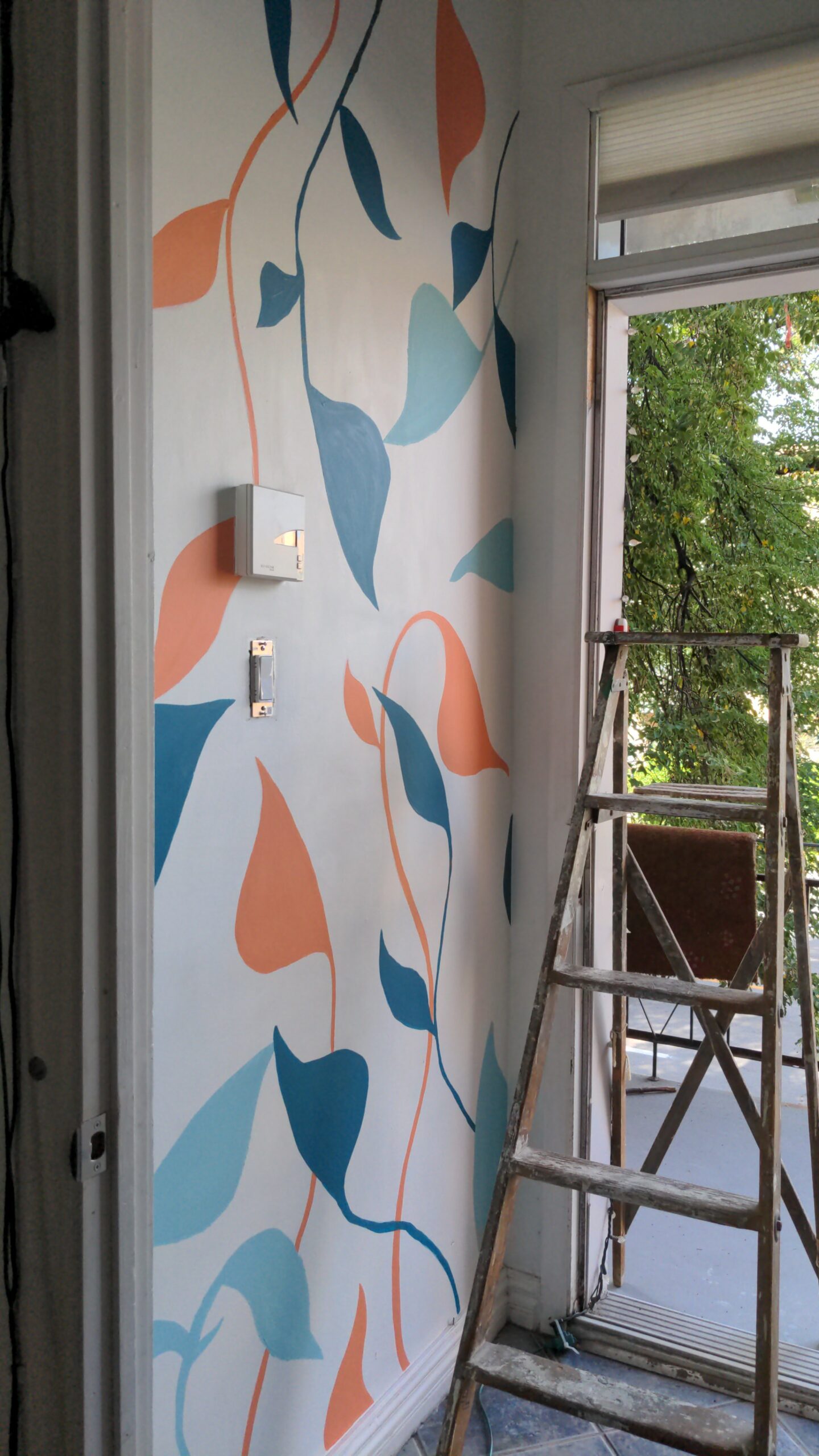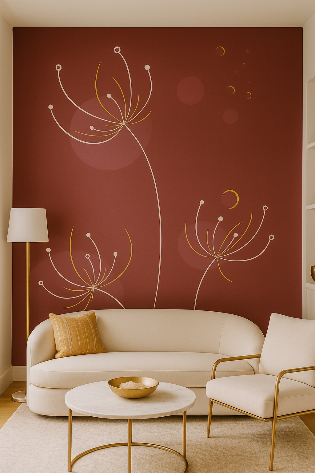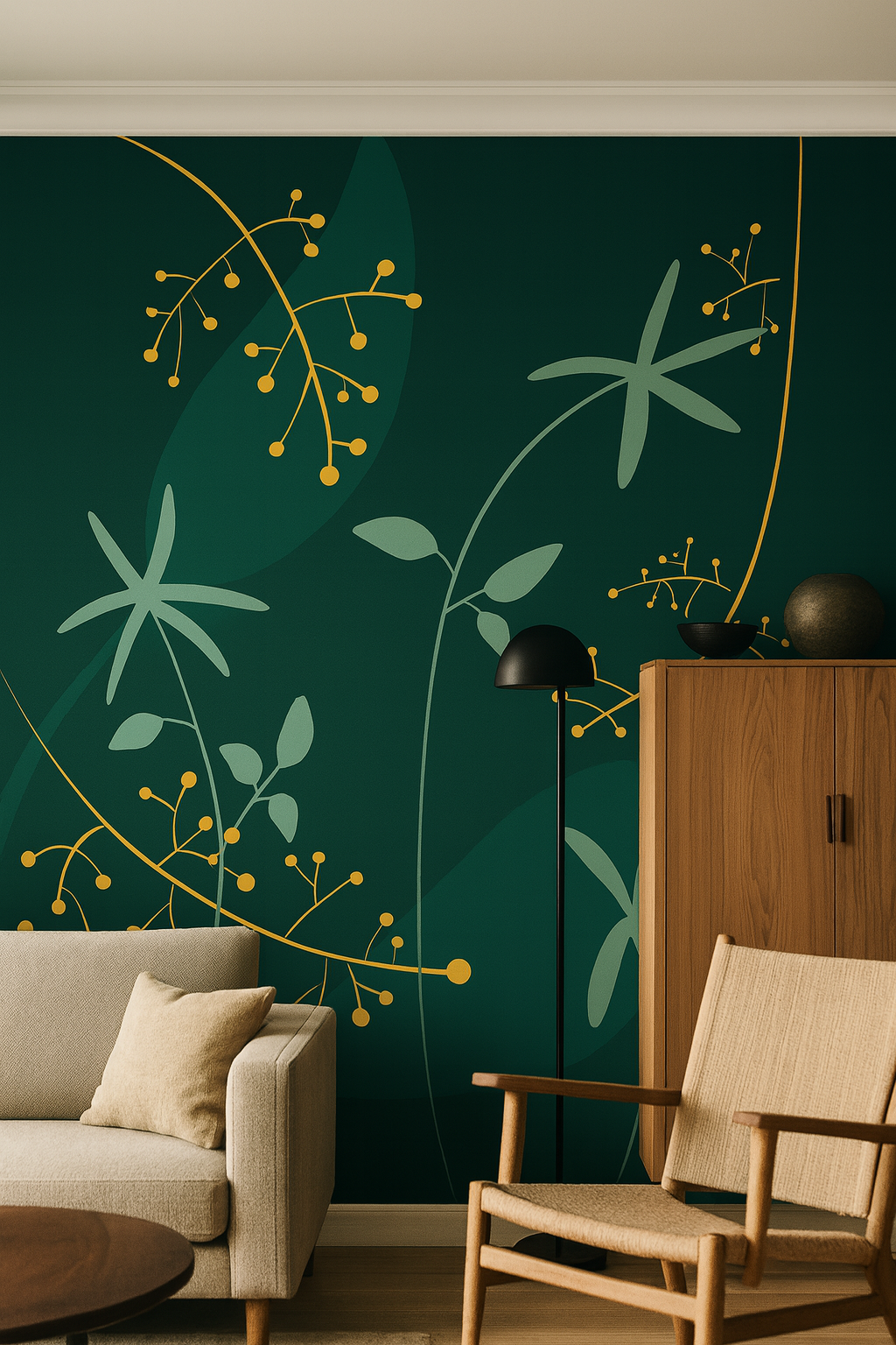 À travers mes fresques murales, j’invite la nature à reprendre sa place — doucement, poétiquement, à travers des lignes végétales qui respirent et se fondent dans votre intérieur.