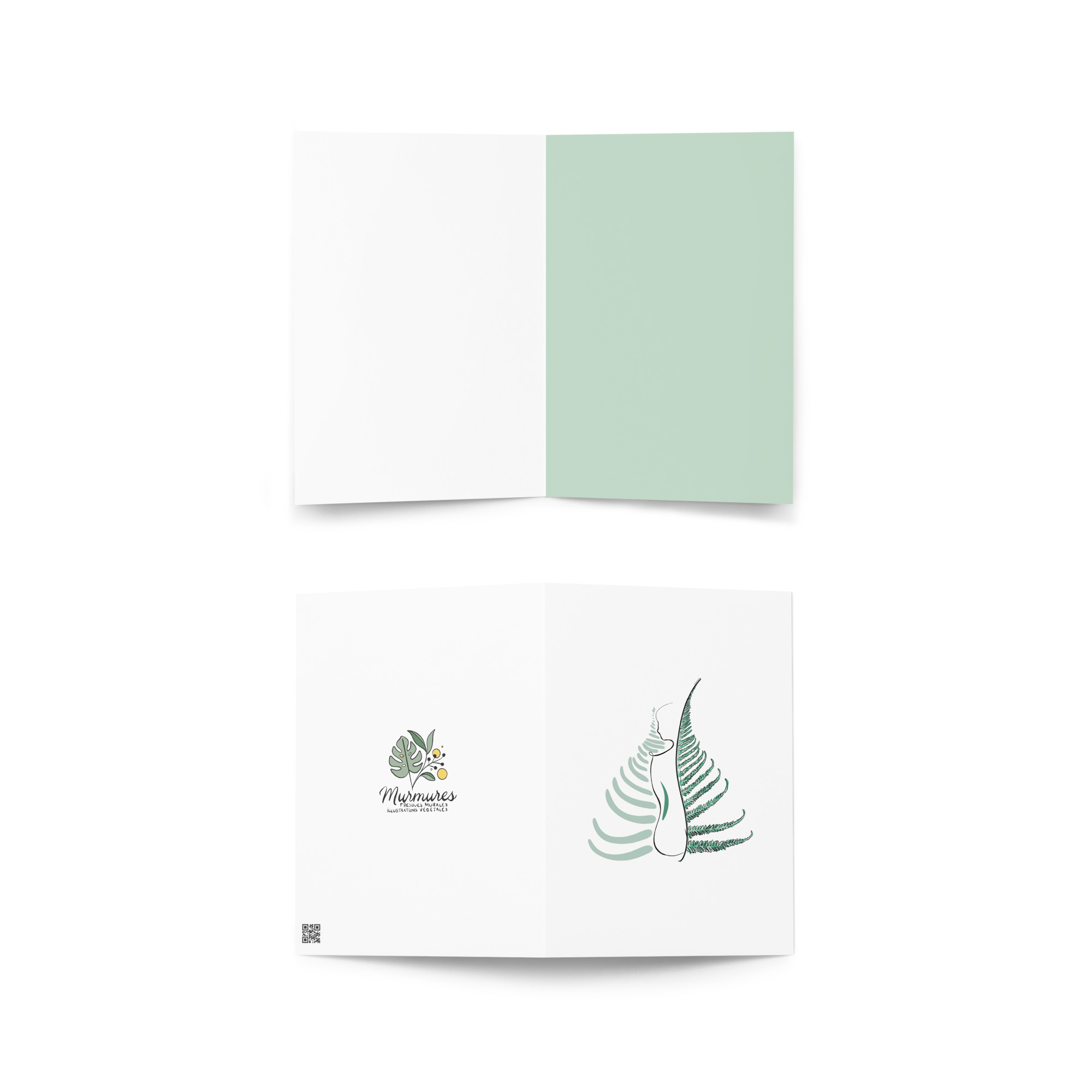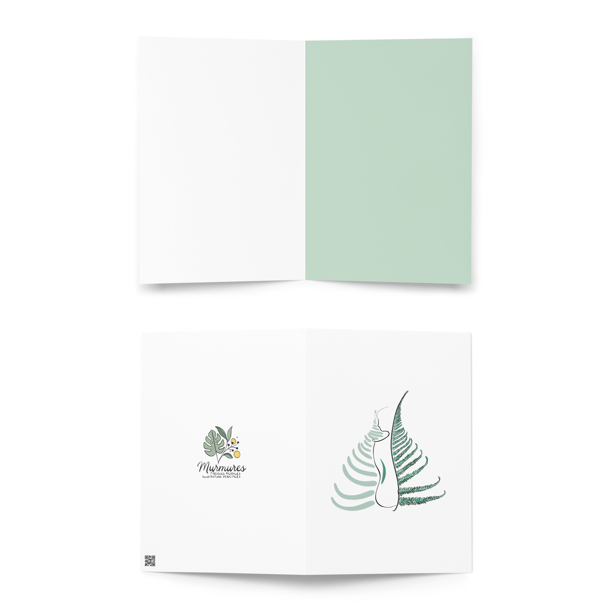 Une illustration minimaliste en line art représentant un corps féminin fusionné avec des motifs de fougères stylisées, symbole de nature et d’harmonie.