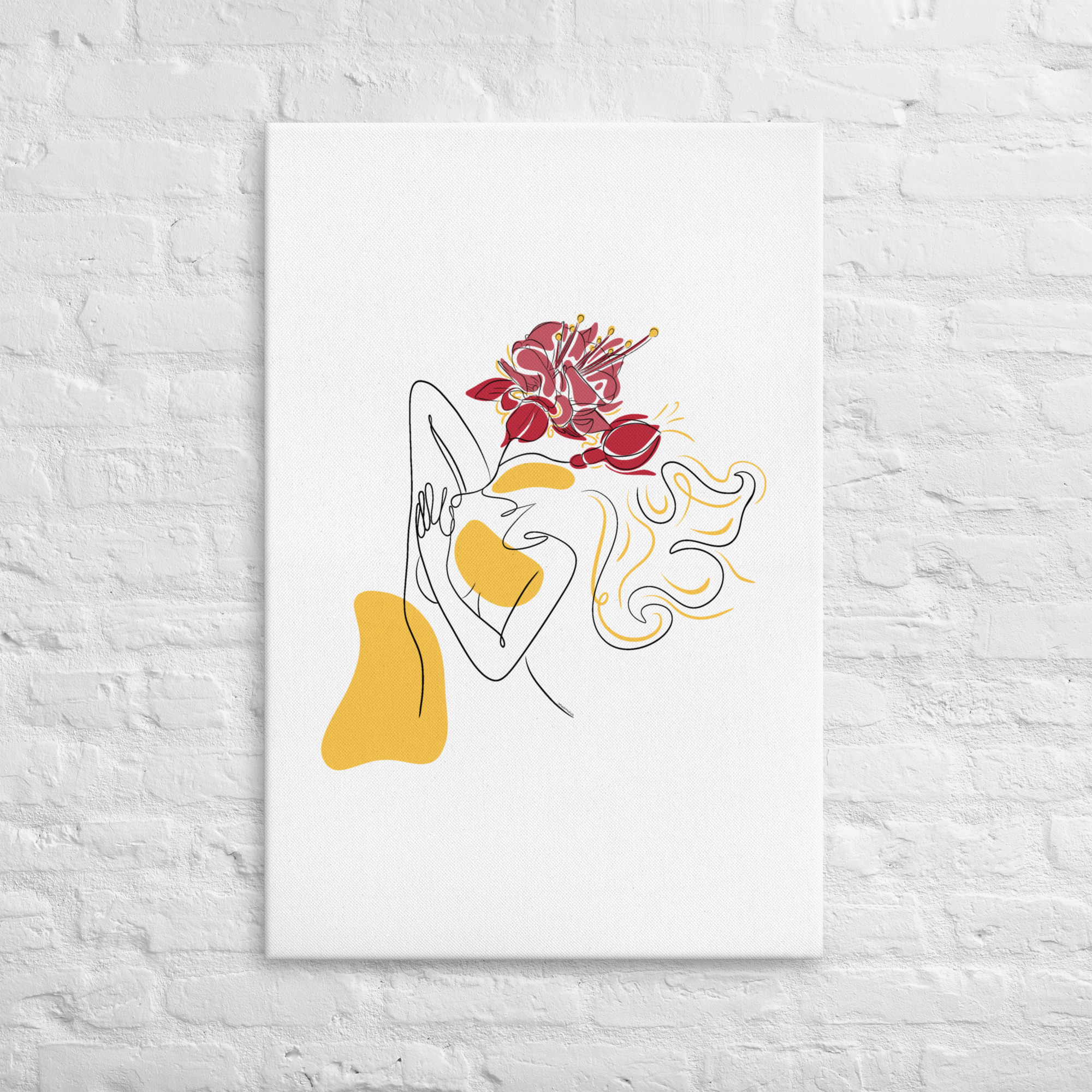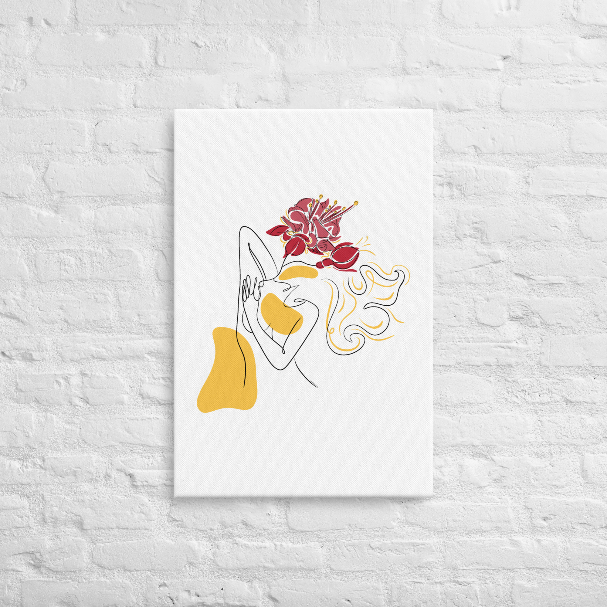 Ce dessin botanique contemporain et poétique associe féminité et élégance florale, sublimant la beauté des fleurs suspendues.
