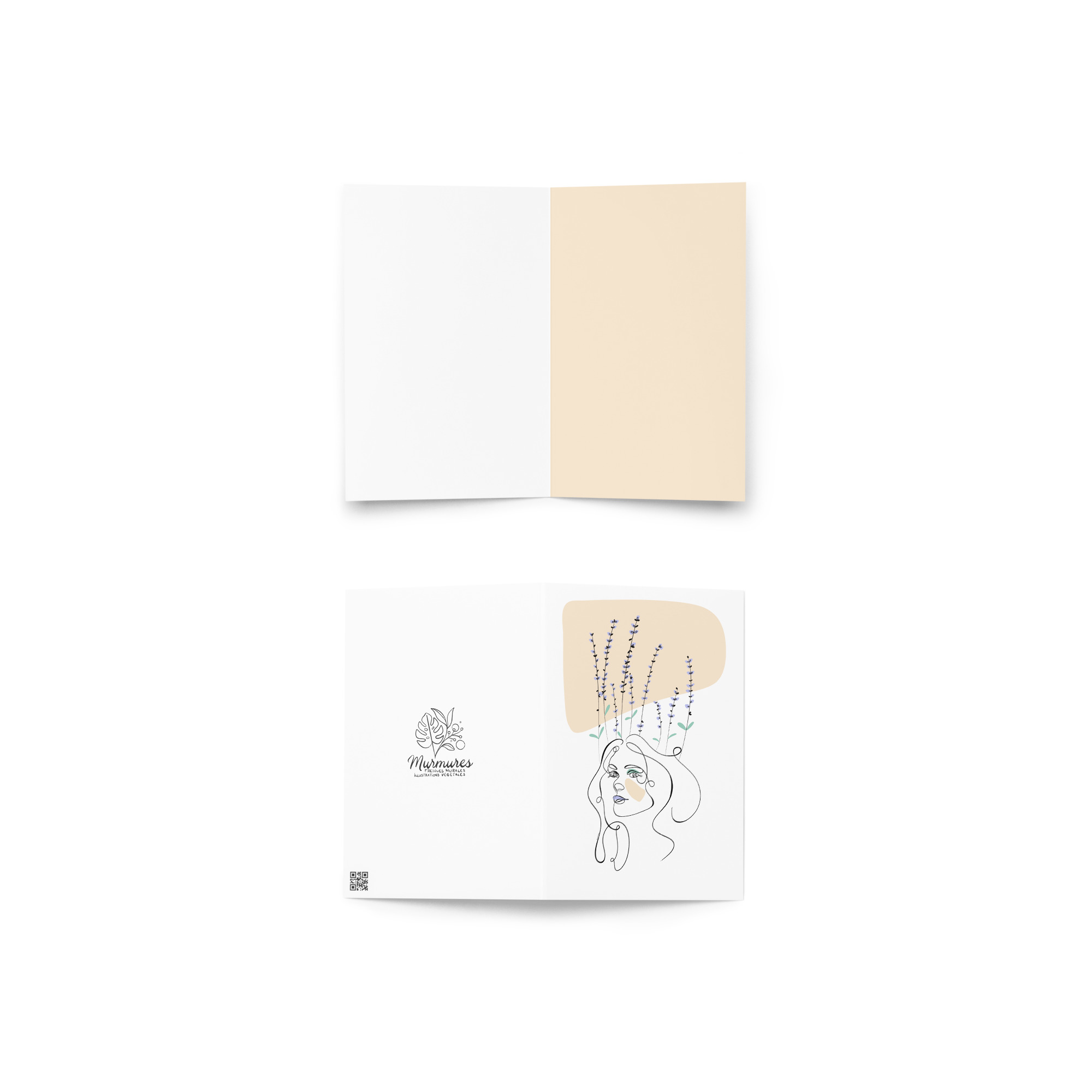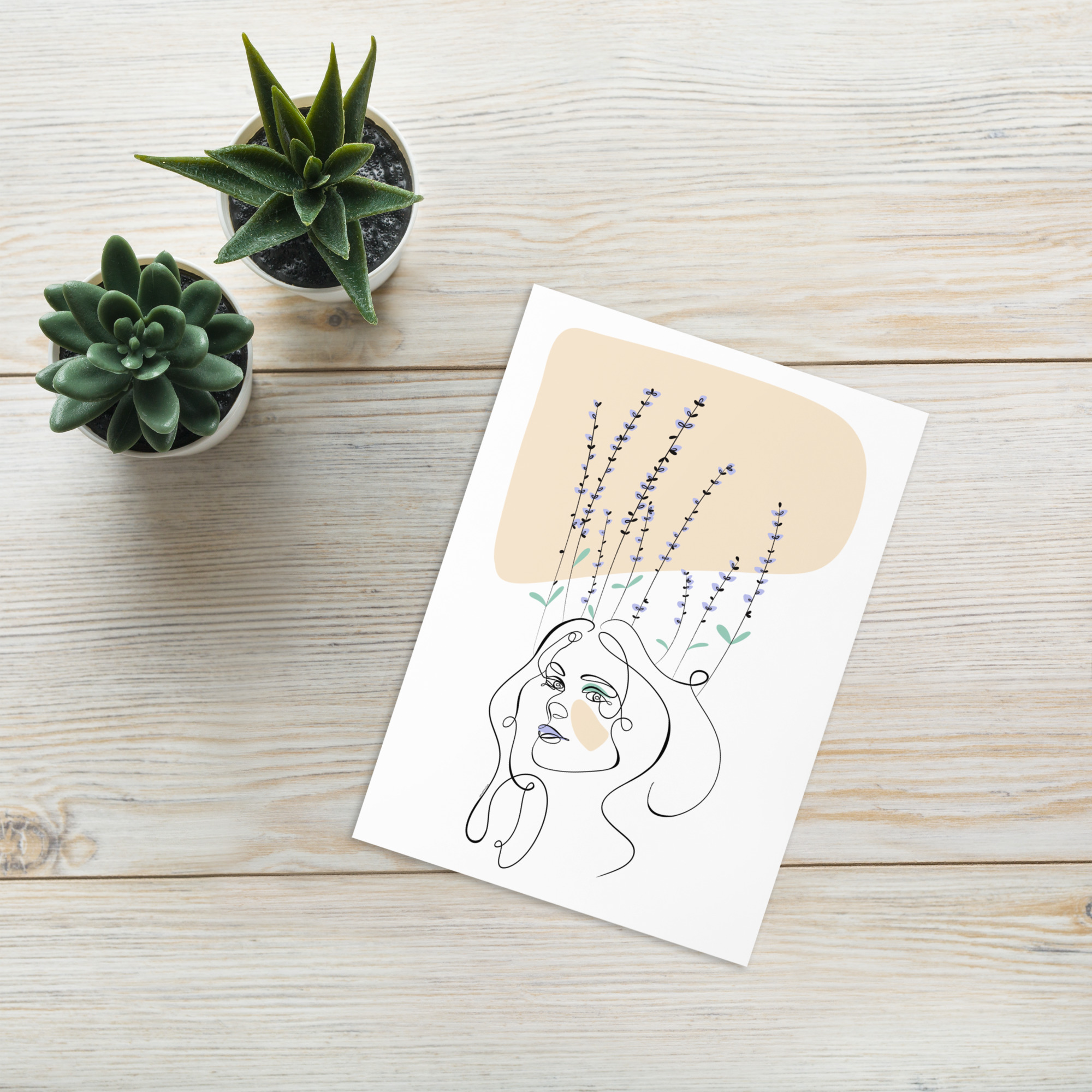 Une illustration minimaliste en line art représentant un visage féminin orné de lavande, symbole de sérénité et de douceur.