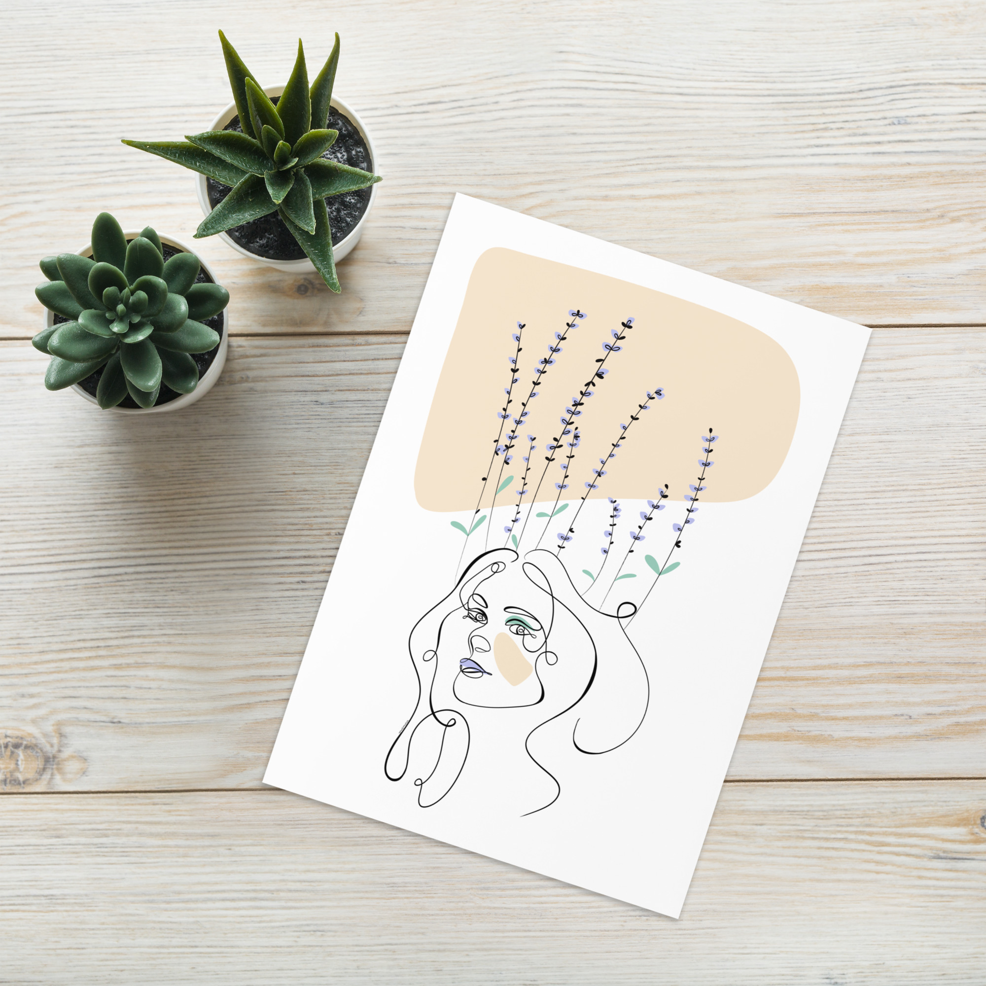 Ce dessin poétique marie nature et féminité dans une composition raffinée et apaisante.