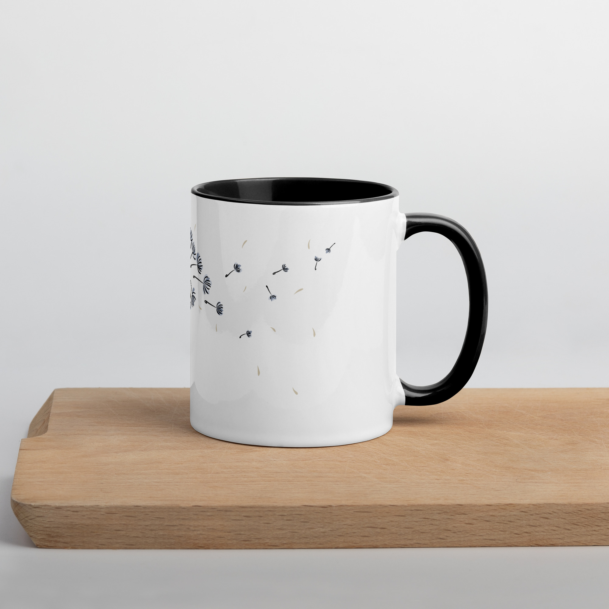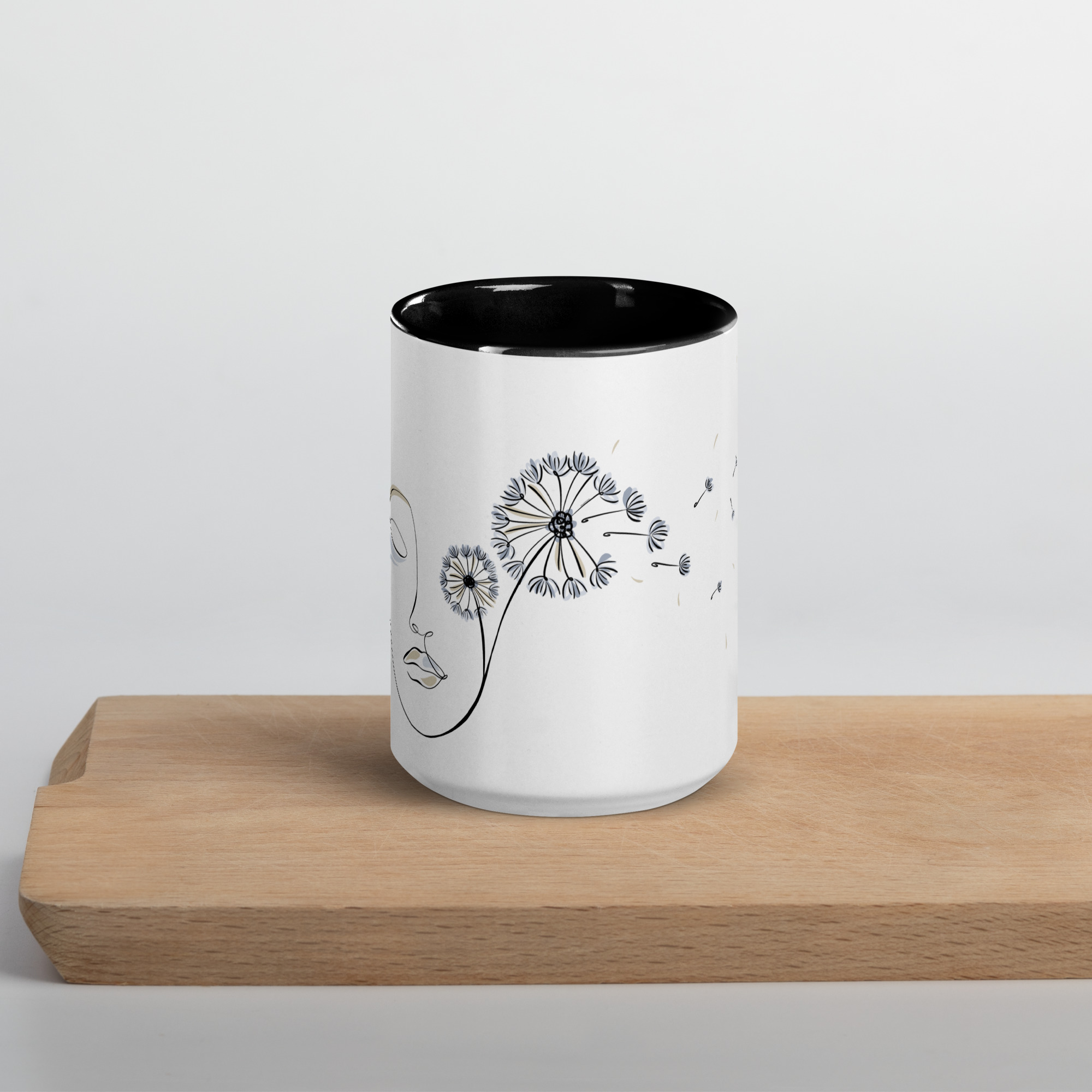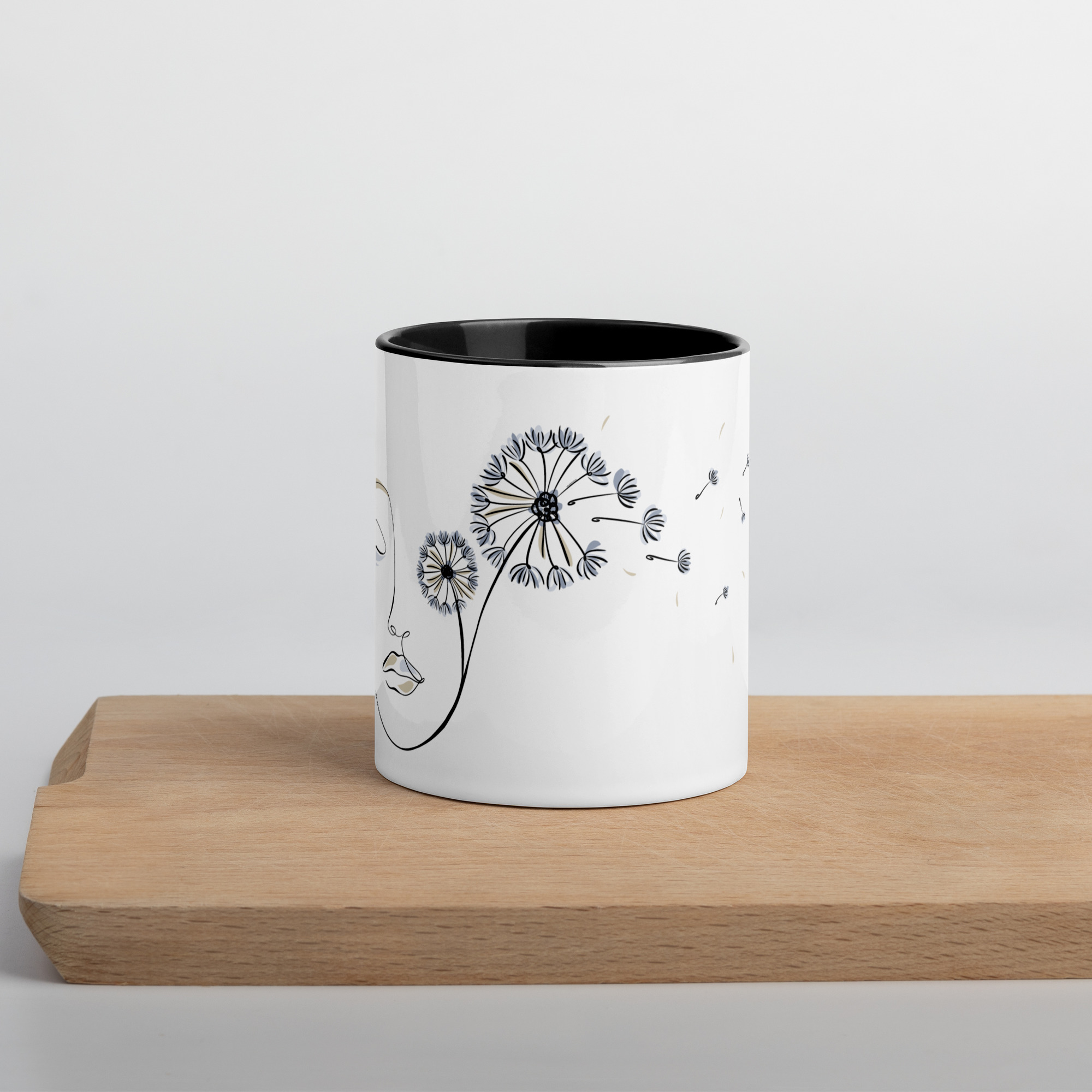 Une illustration minimaliste en line art représentant un visage féminin d’où s’envolent des pissenlits, symboles de liberté, de souffle et de poésie.