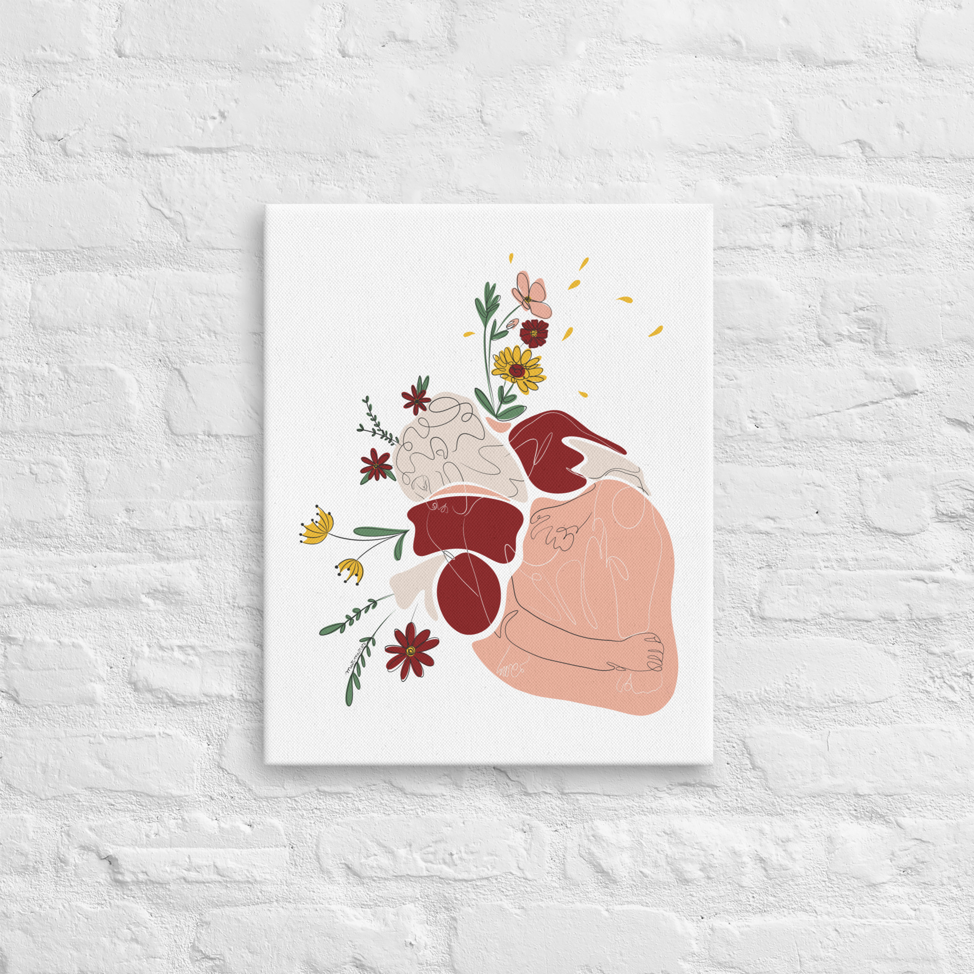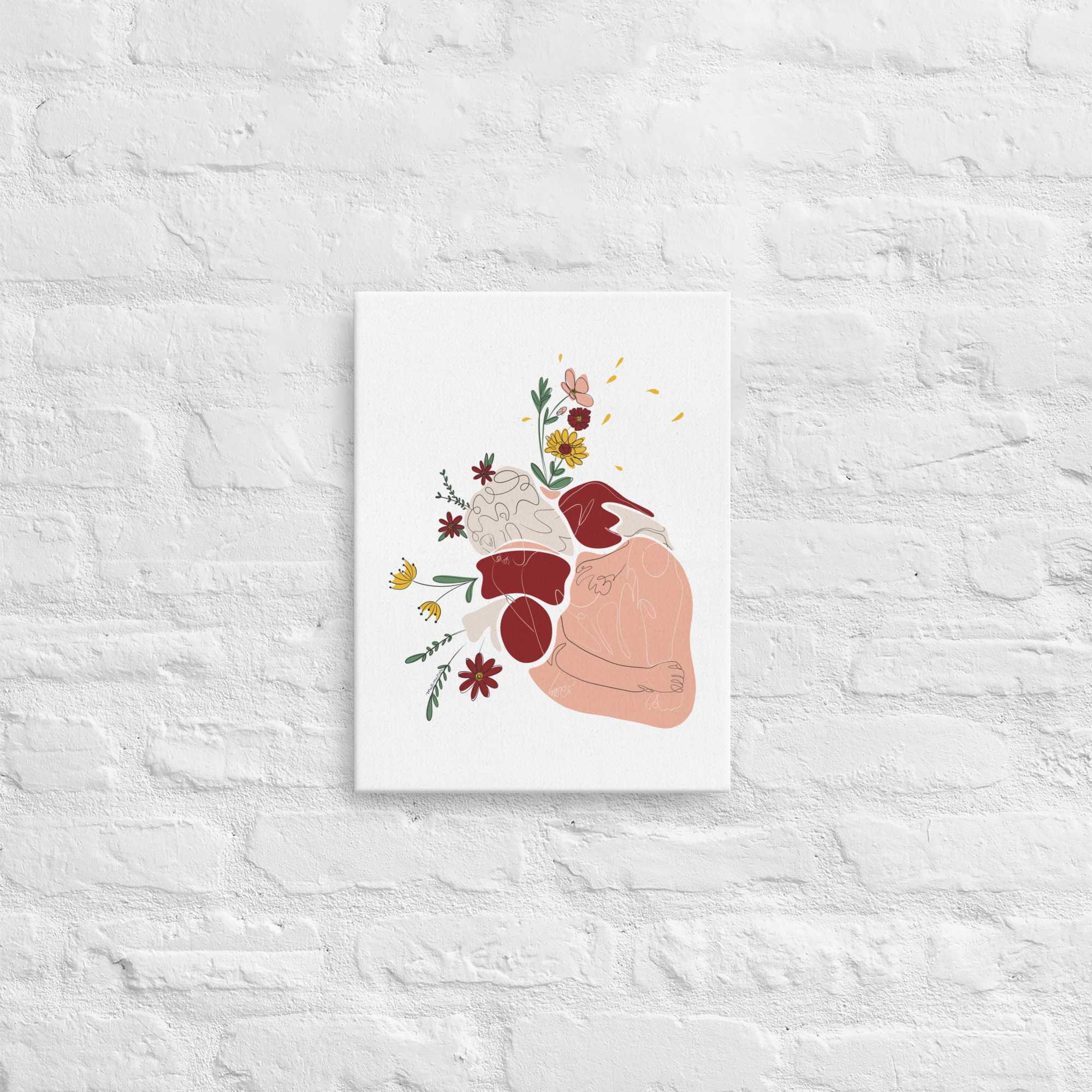 Le Cœur Végétal est une illustration poétique mêlant formes organiques et florales, représentant un une femme-fleur dont le coeur fleurit de l’intérieur.